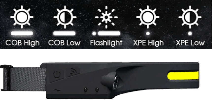 With the touch of a button, you can easily switch from the COB LED flood lights, to the long-distance XPE LED zoom light. Choose from: COB High, COB Low, XPE High, XPE Low, Emergency Strobe.